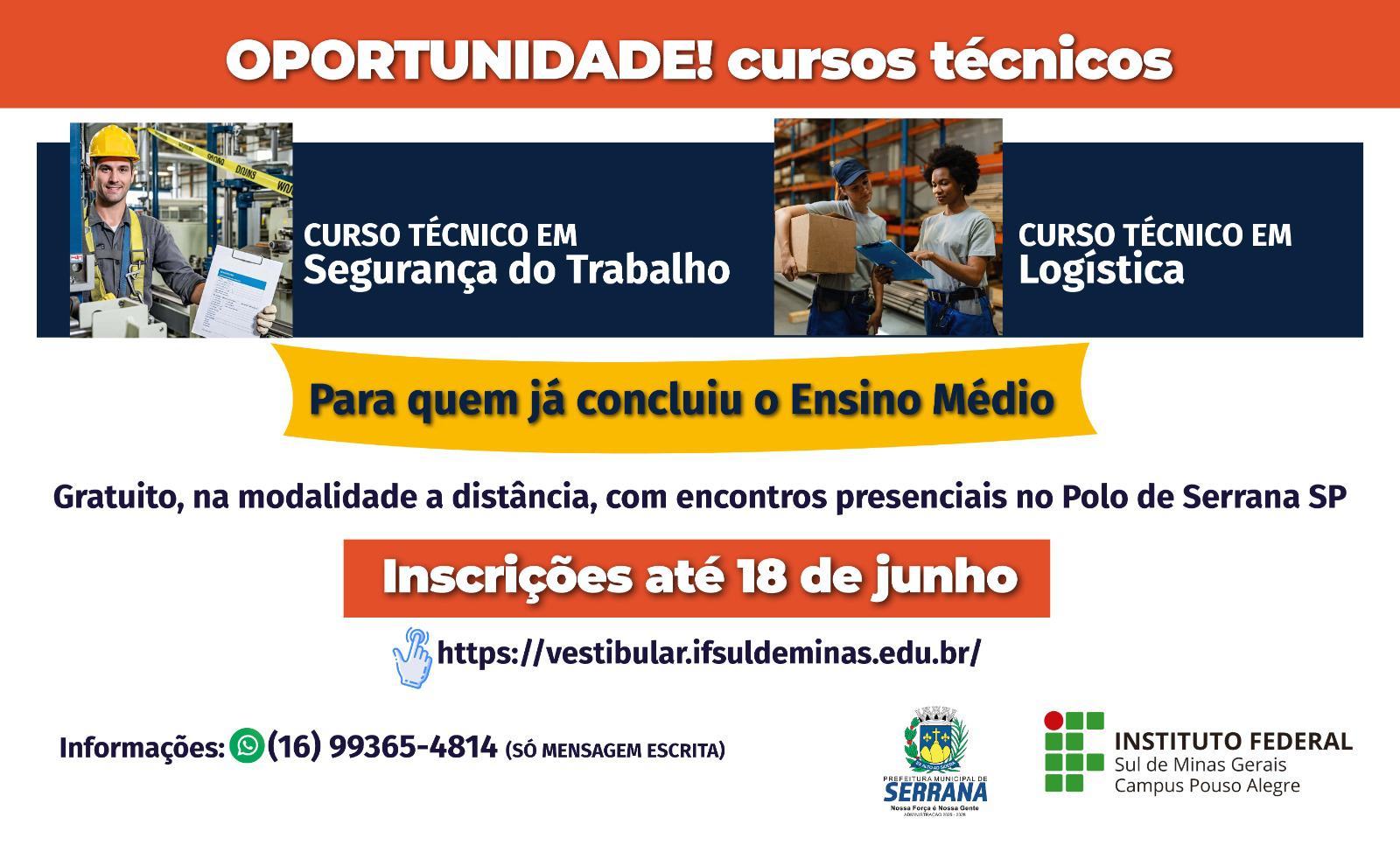 Cursos gratuitos e na modalidade a distância, com encontros presenciais no Polo de Serrana SP.